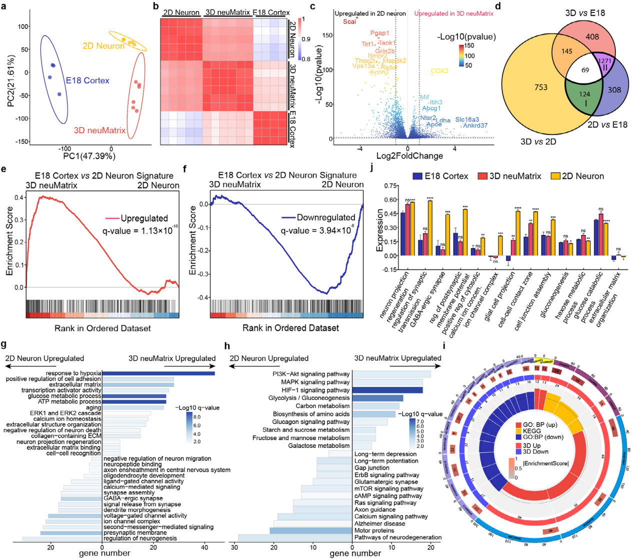 圖4.基于RNA測(cè)序驗(yàn)證3D neuMatrix的基因表達(dá)保真度。